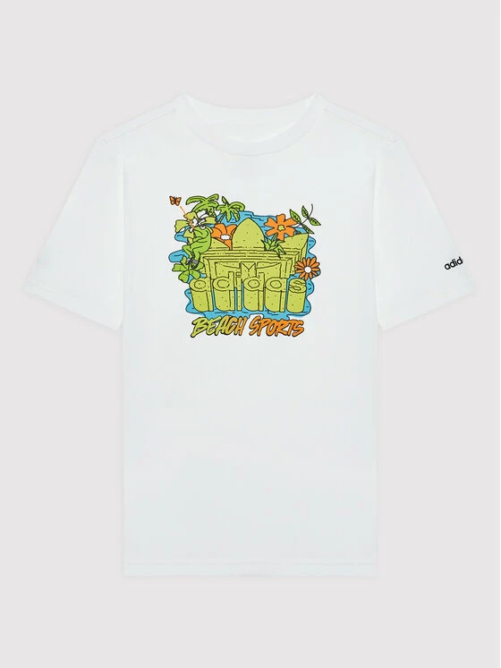 Φτηνός ✔️ Adidas T-shirts T-Shirt Graphic Stoked Beach HF7433 Λευκό Regular Fit 💯